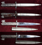 il fodero, nichelato, e` del tipo di pugnale a testa d`aquila
