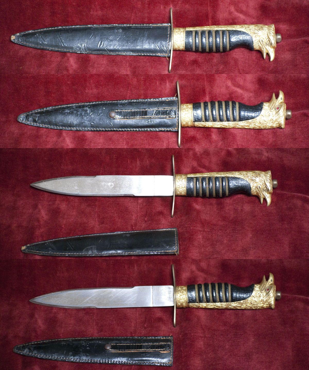 il fodero, nichelato, e` del tipo di pugnale a testa d`aquila