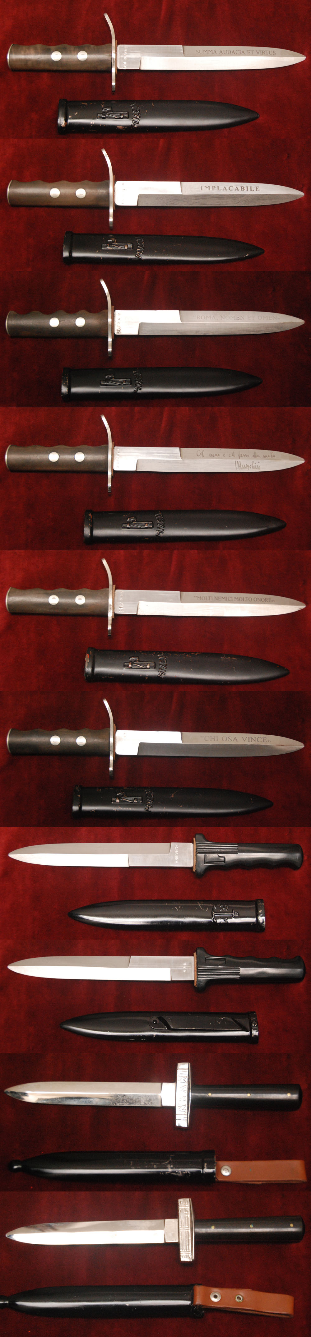 Riproduzioni dei 6 pugnali con motto delle Divisioni